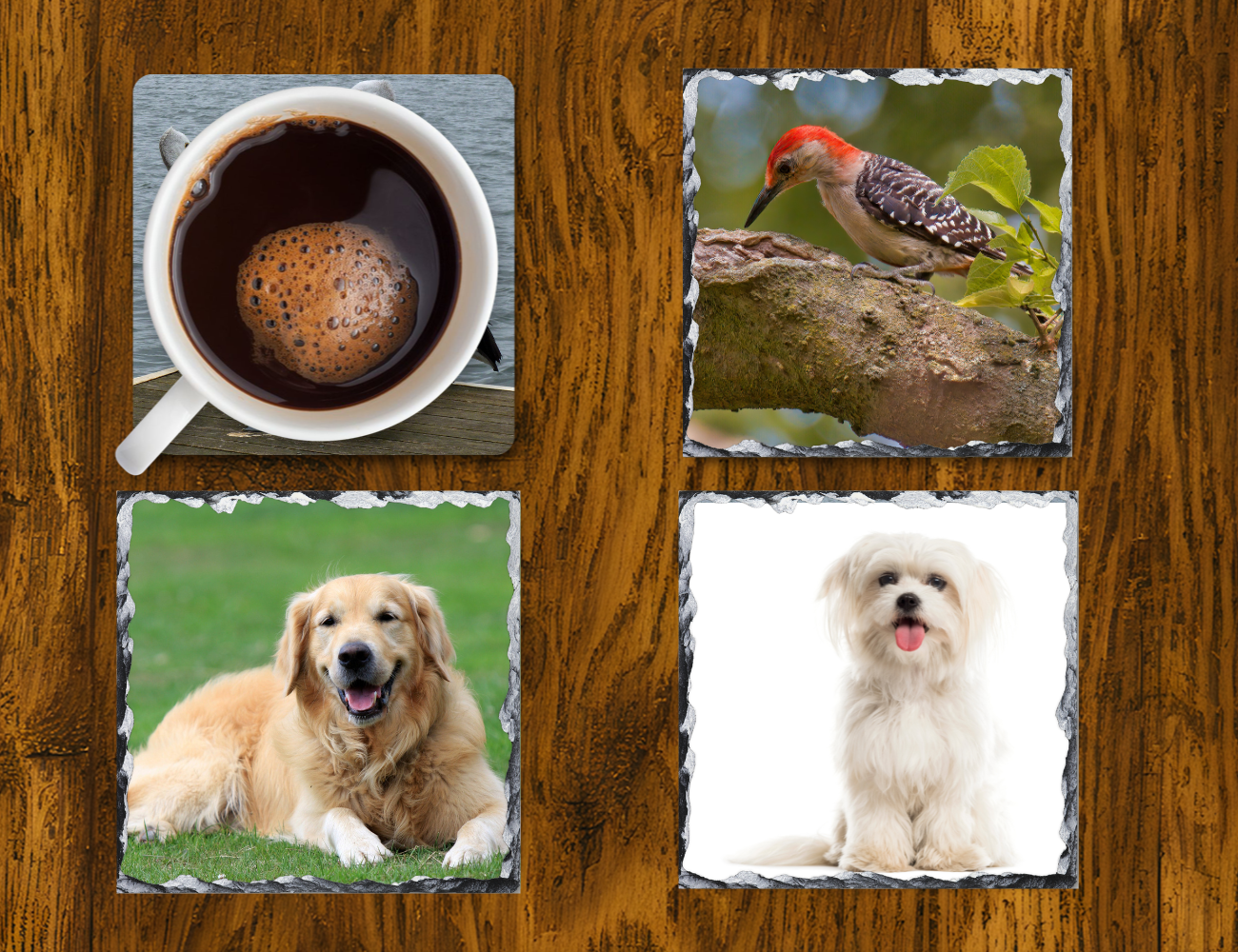 Transform your favourite memories into a unique, practical keepsake with our personalised slate photo coasters. Crafted with a glossy finish to enhance photo quality, each coaster is approximately 90mm in size and comes with four rubber feet to protect surfaces. These coasters are ideal for adding a personal touch to your home or as a thoughtful gift for loved ones.